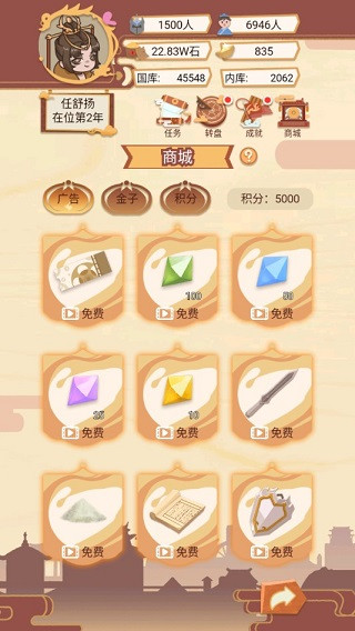在其中在各级建设中,每一个州郡都是有适合持续发展的产业链,如果你不愿一个一个调节时,统一建设、智能化建设是一个不错的选择,在军事管理中,共有四个军种基地,更新他们可以提供更大的容积及其军种属性。在皇宫管理方面,皇宫里的人每年都需要耗费内库资产,当资金紧张时,它会离开你。当侍者好感度做到最高级别,可以升级为嫔妃,嫔妃的属性加持会翻番,但相对应每一年投入的资产也就会多许多
