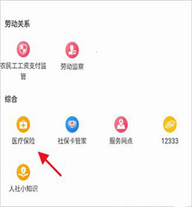 4、进到“做事”网页页面,寻找下方“医保”选择项并点击查看。