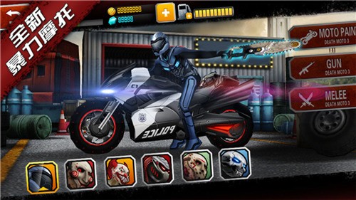 与一般赛车手游对比,有许多新的游戏模式,玩家还可以使用自己的武器装备抵抗别的摩托赛车手。
