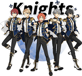 4、Knights隶属公司:NEW DIMENSION“奉上音乐的圣殿骑士团。An order of knights devoting songs to you.”由朱樱司带领的骑士道组成。精英团队善于利用勇士的人物设定品牌形象给予设计风格热忱且各种各样的专属福利。在新闻媒体曝光层面以广告宣传、走秀模特、娱乐节目、美食探店、电视连续剧等能发挥出容貌竞争力的工作中为主导。主题色是暗蓝色。朱樱司CV:土田玲央月永雷欧CV:浅沼晋太郎濑名泉CV:伊藤マサミ朔间凛月CV:山脚下大輝鸣上岚CV:北村諒