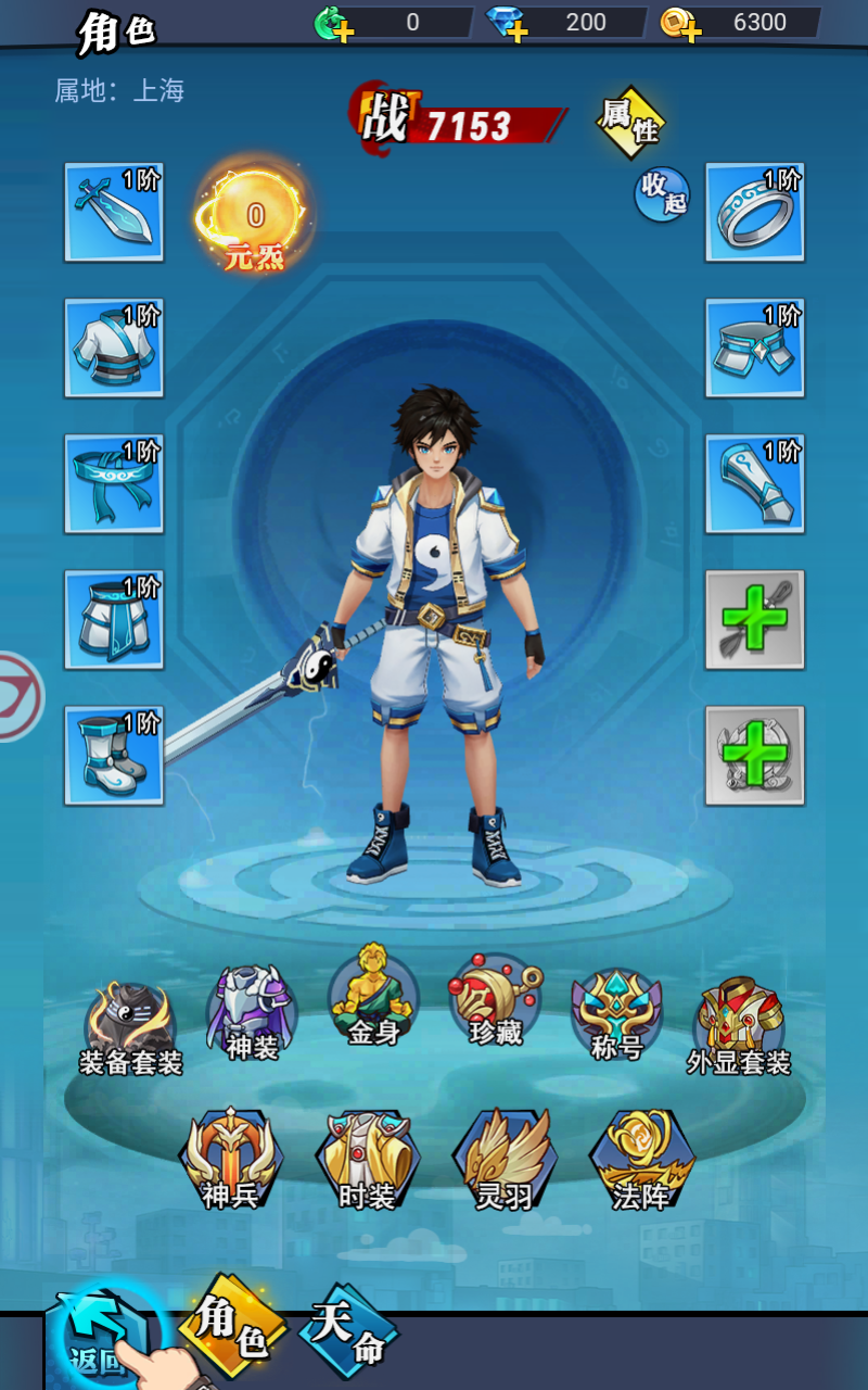 人物的装备一共有十个位置,分别是:仙器、法袍、发冠、牛仔裤子、皮靴、镯子、裤带、护手、玉饰、符文;每个部位相匹配一件装备,每一件装备有自已的品阶和评星,装备首先从副本中爆出。