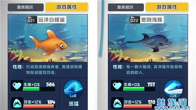 更新你大白鲨能增加它的力量和血量,使你能更轻松地吞掉别的鱼。随着你的大白鲨越来越强,那你也将能够开启更高级别的鱼类。因此,别忘记更新你大白鲨,将会是开启新鱼类的关键所在。