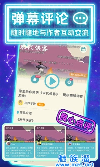 主要展示用户创作的游戏作品,同时提供浏览、免费试玩作品作用,有利于用户并对作品的监管。