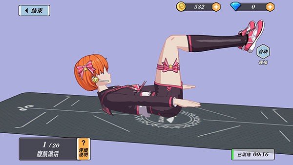 3、真真正正之间的互动线上健身游戏,体验不一样的健身方式吧,游戏画面是3d日本动漫,游戏非常简单。