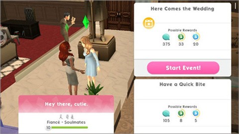 2、当友好度做到8的时候就可以浪漫求婚,求婚成功后便可以筹划结婚。若2个小人的对谈栏内发生“here comes the wedding”,也就意味着能够踏入结婚流程了,这时边上的任务栏图标会弹出一个限时任务。