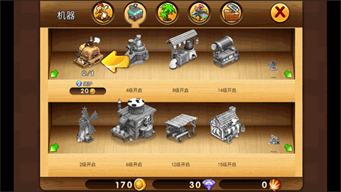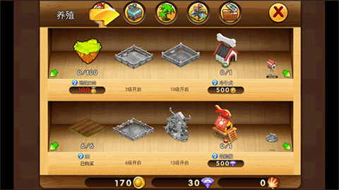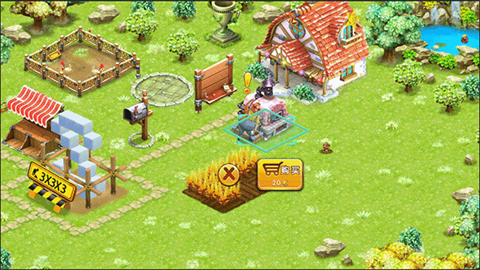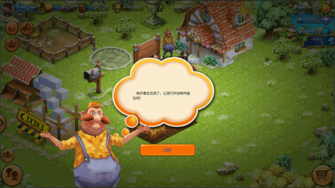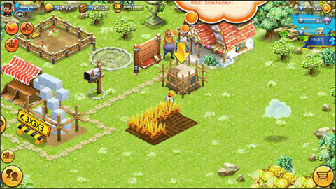 1、开始游戏,收种完麦地后,为了能灵活运用收获小麦,玩家应建造一个烤蛋糕炉。最先,点一下页面右下角买东西车图标;