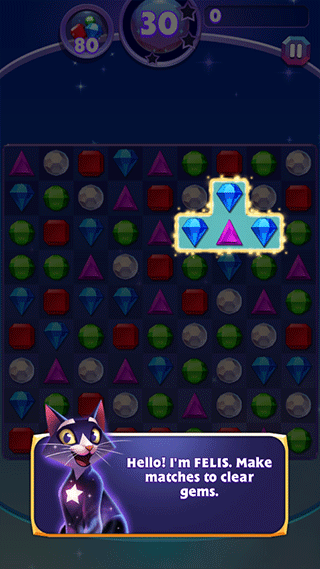 2、玩法比较简单,与经典三消玩法相近,根据三个及以上的同样晶石去进行消除;
