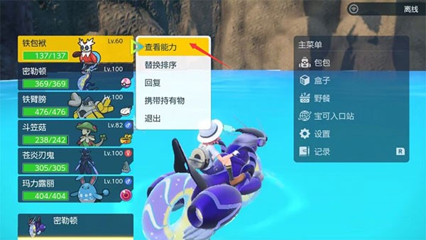 1、打开菜单,挑选宝可梦查看能力。