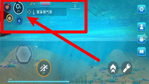 3.补充管理方法:随时关注左上角的O2值与每日任务提醒,规范使用氧气罐,保证热量充裕并圆满完成收集或探索每日任务。