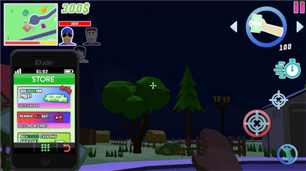 4、进到游戏后能够看见实例教程,滚动遥杆操纵挪动,应用箭头符号可以切换武器装备,点一下手机能购买车辆