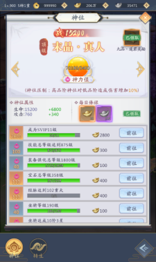 在仙长过关主线任务副本第5关以后,就可以开启神位系统啦。九州修真界中,仙长必须逐一来完成封天每日任务,一路降妖除魔,才可以提升成上神噢~