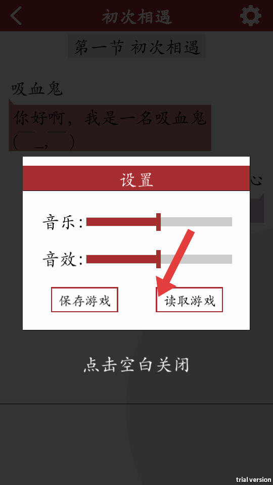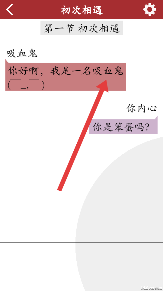 1. 轻一点“进入游戏”,迈入“第一次相遇”章节目录,认真阅读吸血鬼和你的沟通交流具体内容,剧情随着推动,从而开启互动交流选择项。