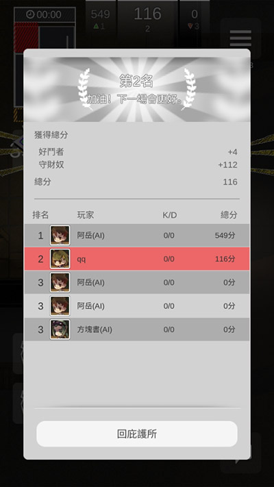 5、最终,当游戏结束后,你将看见你的排行;根据自己在游戏全过程上的表现成绩,我们将得到相应的排行奖励激励。