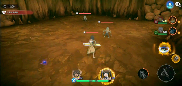 6、然后等待一会载入就可以进入游戏,游戏采用横板挪动控制,左侧转盘操纵挪动,右侧则是进攻与技能键;