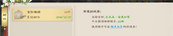 5、达相匹配官衔能领每日月俸,月俸通过平台电子邮件全自动派发;月末会依官衔级别派发月末宝石箱子;