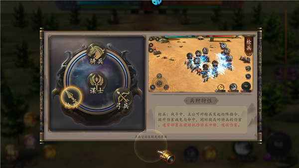 2、游戏里面的军种分成骑兵队、弓兵、盾兵、谋臣,不同类型的军种都有各自的特点。