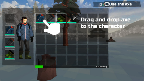4、顺着正前方路经一直走,可获取一把斧头,开启挎包将斧子武器装备好。