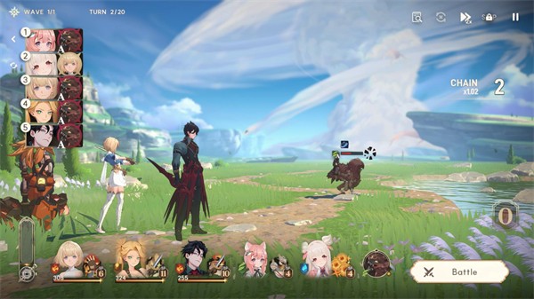 5、当所有角色所有选定技能后点击battle按键就可以去作战,角色就会自动放技能。