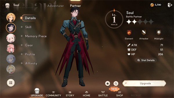 8、点击下方UPGRADE后,再点击Partner能够对自己的的小伙伴进行提升。