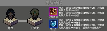 共鸣:操纵2个巨盾围绕本身转动3秒,对触碰的敌人导致200%损害,巨盾运动速度提高