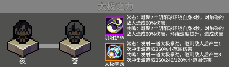 常态:发射一道太极参劲,遇到敌人后发生1次震波导致360%小群体伤害