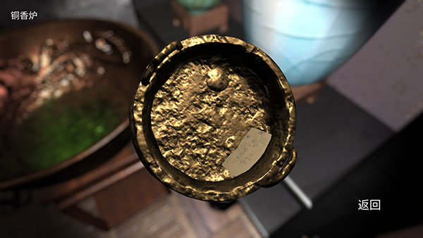 3、架子上第二层右侧有一个【铜香炉】;
