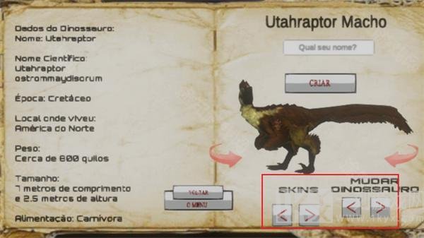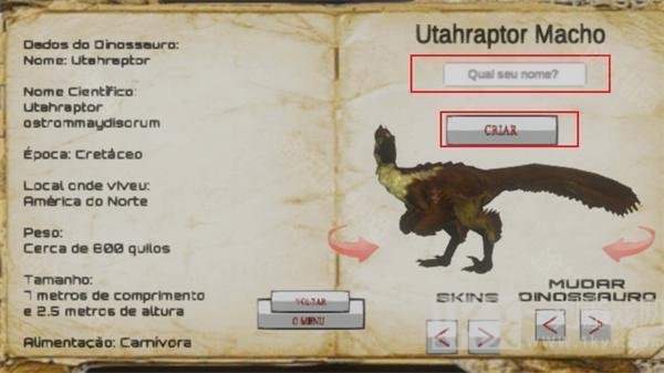 2. 挑选恐龙:表明【CRIAR】按钮的恐龙可以考虑 点击【CRIAR】按钮就可以选定恐龙