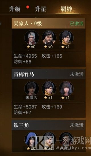 在点开伙伴界面的牵绊列表中,能够看见相匹配人物的牵绊组成,牵绊是该角色在原著中的人际交往,当一组牵绊中所有角色都助战后,玩家获得额外的牵绊加持,凑够这种原著中的组成,让自己变得更强吧!