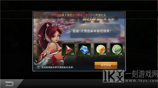级别上升以后,也有拳皇之途可以挑战,是一次性考验玩法,可是经验许多。此外每日刷图的推荐每日任务都是有很多的经验奖赏,只要符合主题活动要求,就能获得奖赏,每个规定项目都注明,游戏玩家按照要求来完成就可以。