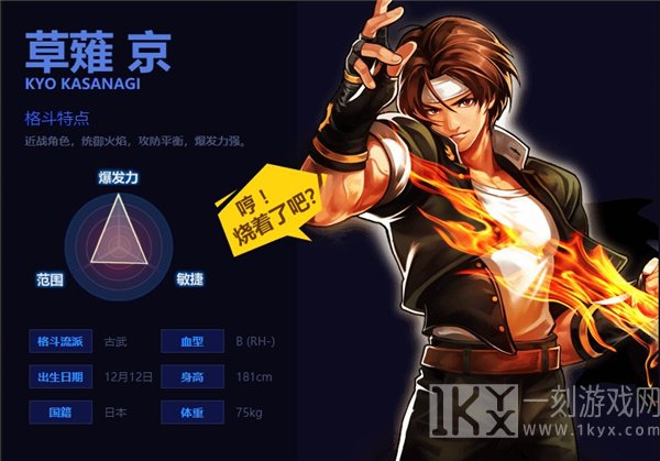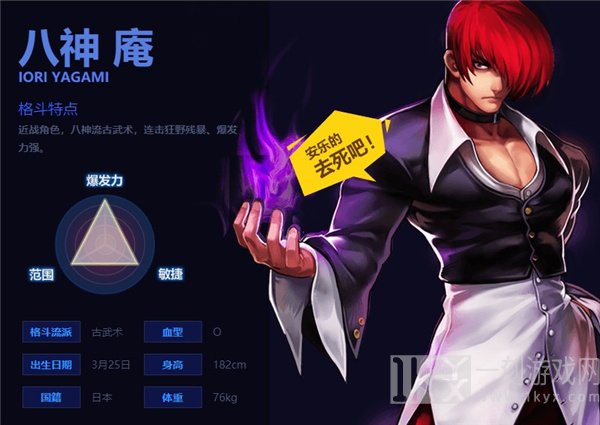 特性:近身战角色,八神流古武术,连斩野性暴虐、爆发力强。