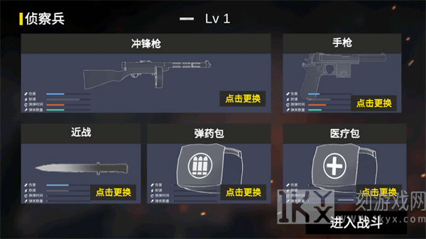 3、选择完兵种后,还要点一下拆换来选择自身武器,选择进行点击查看作战就可以进行去玩;