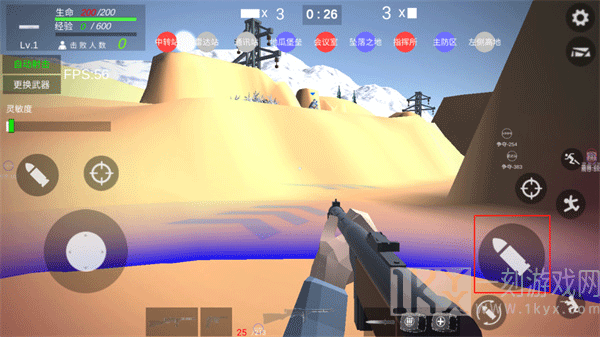 5、根据点击右下角的射击按键来发动攻击;
