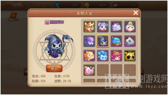 游戏中的均值型宠物有:狐狸宝宝,黑喑死神之