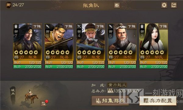 游戏里面依据势力和历史长河中角色的特殊关系在一起出战的时候就会开启牵绊实际效果,当出战五个同阵营武将之后在战场上产生12%的属性加持。除开同势力武将出战有加持外,特殊关系的武将一同出战时,战争中打敌人会提高独特情况效果,例如五虎上将三人同队时,【反戈】提高8%;前三来回移动力提高1。