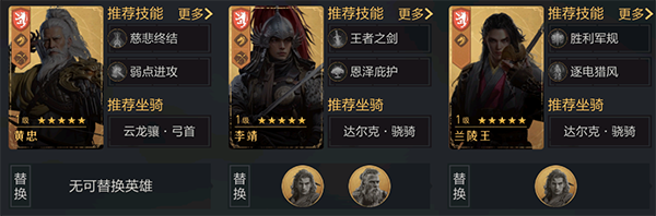团队其中包含黄忠和孙尚香2个超强力导出点,在S1追击安装技能有限的情况下,能让孙尚香携带“逐电猎风”提供一些协助能力。李天王内置冶疗,也可以搭配恩德庇佑给予好一点的伤害减免实际效果。