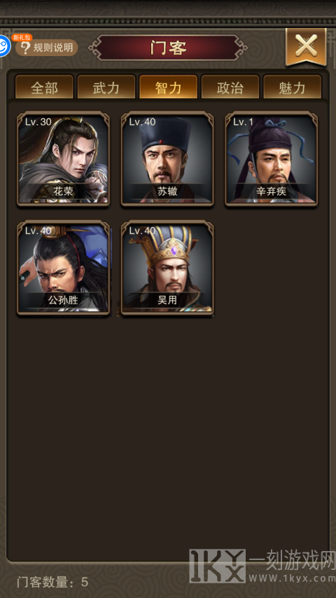 3、优先选择提高战斗力和智商门客,确保战斗力和银子产出率,政冶与魅力可稍候。