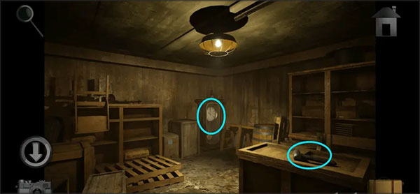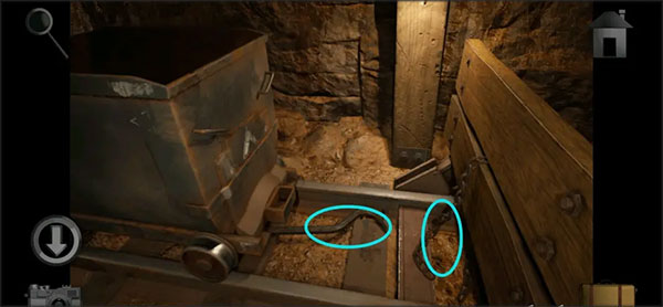 12、进到右侧灰黑色地区,检索矿山在左边区域内的箱子上拿到「导线」,然后赶到右侧爆炸品房间门口,用撬杠撬下木工板,随后进房间观察柜子上隔板的提示。