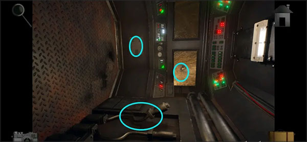 25、将油波在集装箱的门边,进房间前先拿走桌子上的「磁石」,然后根据车牌号码提示打开右侧的木柜拿到里边的「传动齿轮」和「紫外光电灯泡」。然后将桌子上的电灯泡更换,随后观察发生的提示。