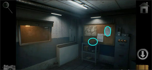 4、返回电梯厅外边的过道,用尖嘴钳打开右侧地面上的小箱子取得里边的「电灯泡」。然后到主控室,依据小箱子里的提示打开铁皮文件柜,随后拿走里边的「医用镊子」。