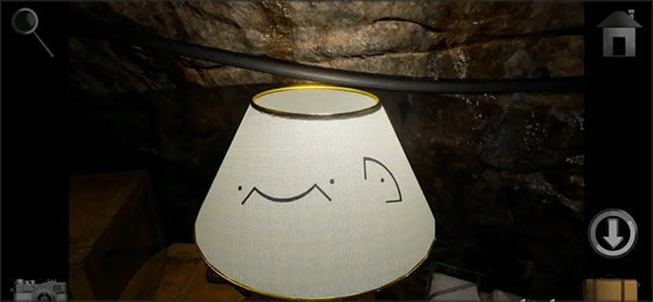 6、撤出主控室走进去赶到主机房大门口,点击右侧小箱子里的小台灯,安上电灯泡后观察灯盖里的提示。然后到宿舍大门口,用镊子取得笼子中的「绳子」。