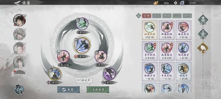 心法踏雪,连斩频次加剑招损害,虽是蓝紫色,可是没有找到比它非常合适的心决了,或是游四方也可以的,看个人,游四方平稳,踏雪上限高