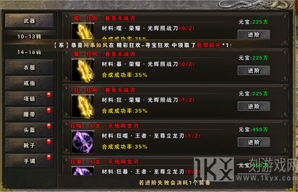 多出的高级武器装备先不要着急回收利用,冶炼可产出率稀有物品,冶炼的武器越高,所获得的原材料也就越多。高级武器装备可结合可升阶。还可以在盟重土城城进行结合升阶。这些都是可以提升整体实力的小窍门。武器装备起来之后在沙巴克攻城,决战荣耀,跨服远征中得心应手。