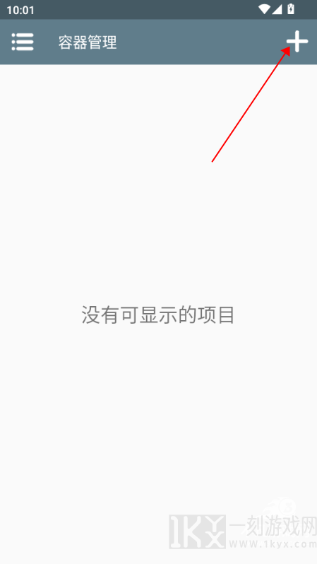 2、运行游戏后,点击右上方“+”标志创建容器。不用配备,点击右下方“√”就可以完成建立;