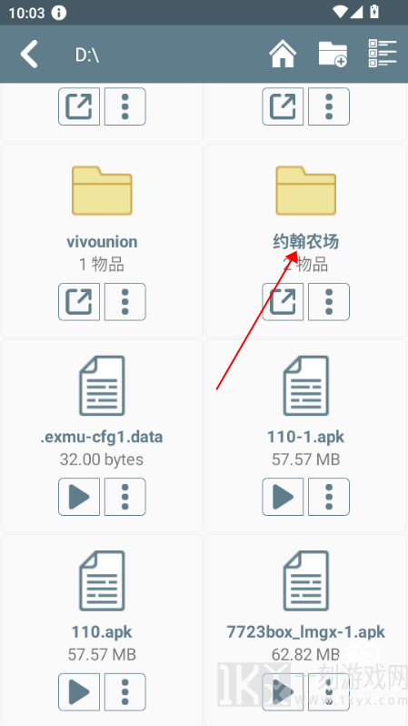 4、应用电脑鼠标导航栏至D盘,寻找名叫“约翰农场”文件夹名称,再打开启动“JohansFarm.exe”会死机一段时间,请等待;