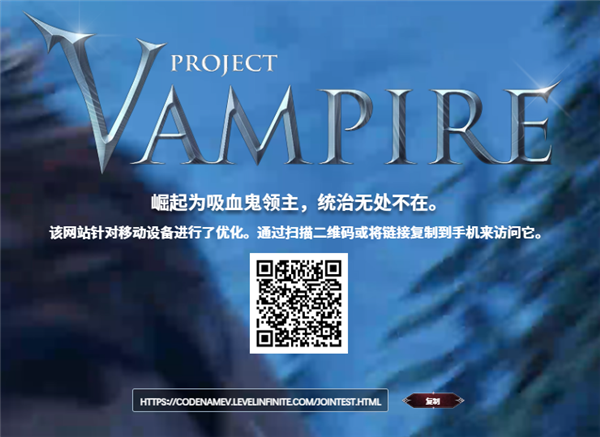 1、检测该二维码,或是拷贝(https://codenamev.levelinfinite.com/jointest.html)该网址进行访问。