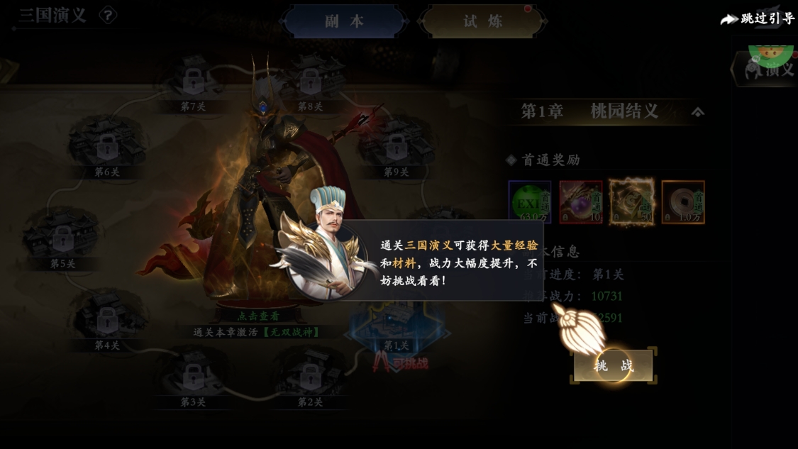 玩家根据达到目标和战斗来推动故事发展,体会三国时期的历史变革。