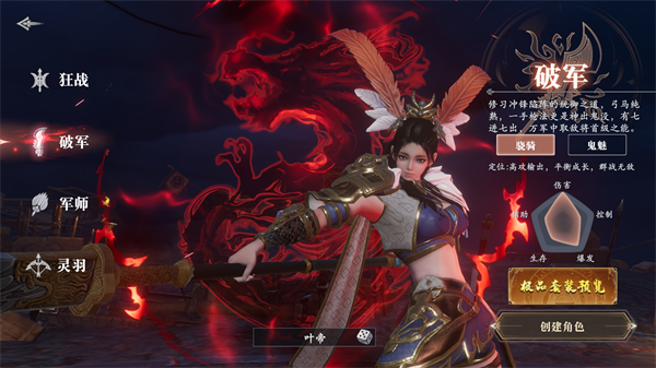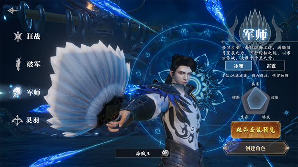人物角色分成各种职业,如谋士、狂战士、灵羽和破军星,每个职业都有独特的优势和特点。