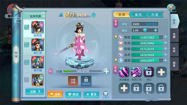 总计登陆第二天还送S级猪八戒,第七天则还送SS级唐三藏。能够使用普通银子、小伙伴工作经验果、八宝粥、油炸臭豆腐给小伙伴们更新级别。图签中可以看一下小伙伴们做到一星、四星、六星不同阶段形状,及其基因变异之后的效果。