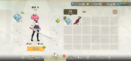 4、进到游戏中心以后,点一下角色武器装备,开展武器,能增加角色战斗能力;