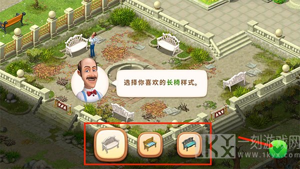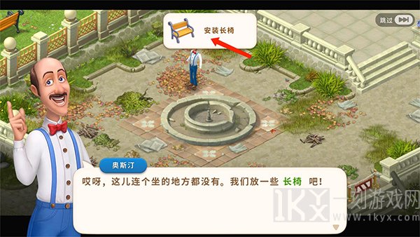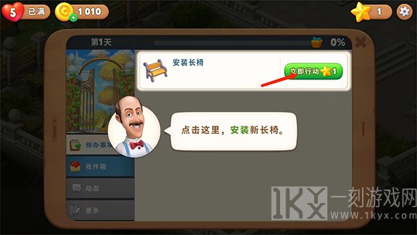 2、发生任务了,我们需要在生态公园安装排椅,再次滑动屏幕,